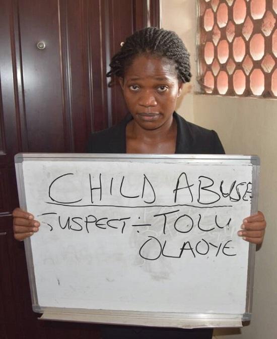 The suspect, Tolu Olaoye, a trained lawyer, is said to be in the habit of physically assaulting her house help. She was arrested by the Lagos State Police Command over an alleged violent abuse of her maid, Abigail Opeyemi, 15, at their home near Unique Estate, Baruwa in Ipaja area of Lagos, Nigeria.